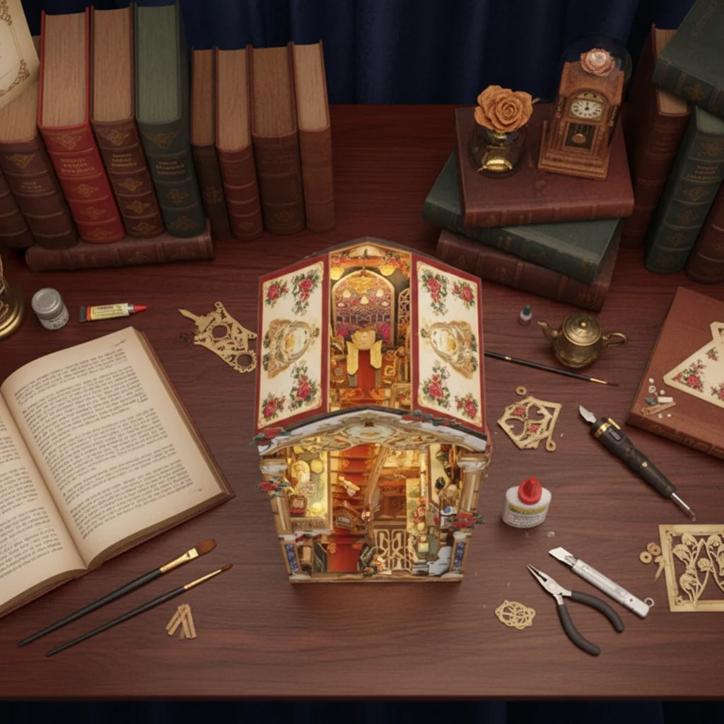 Our book nook kits are crafted from high-quality materials, including durable wood, resin accents, LED lighting, and finely detailed paper elements. Each kit is designed to ensure longevity, stability, and beautiful visual detail on your bookshelf.