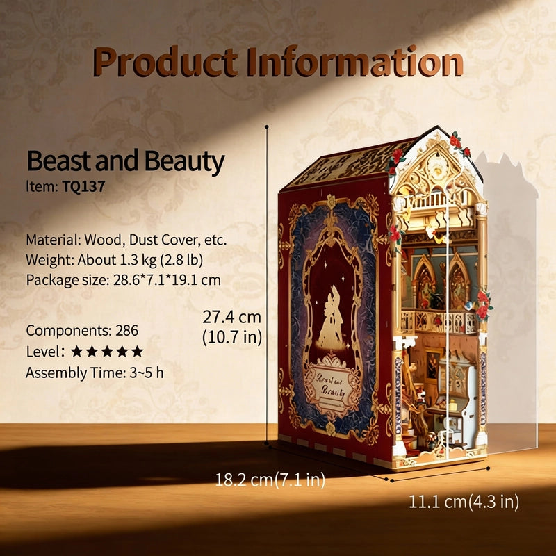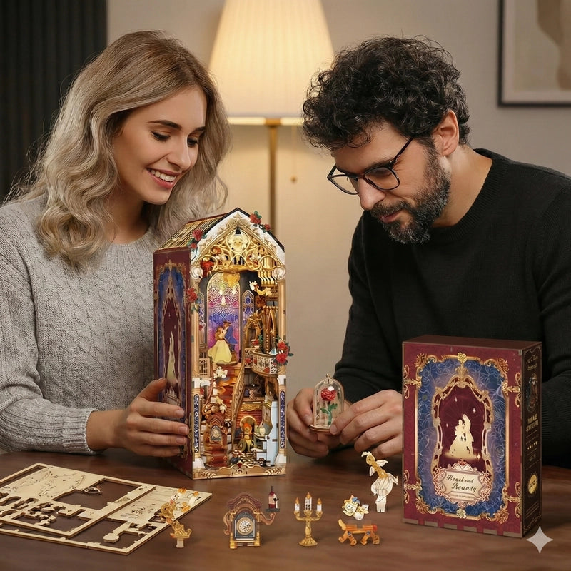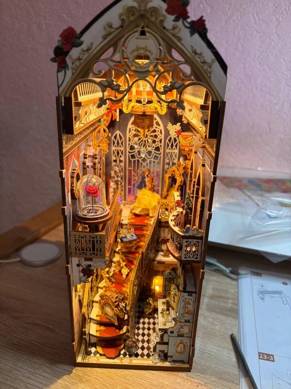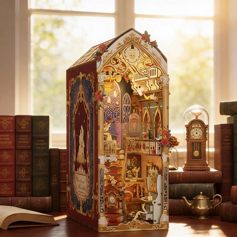 Imagine opening a storybook that leads you straight into the Prince’s enchanted castle. As you lift the lid of your Beauty and the Beast Book Nook, every carefully placed piece feels like a secret waiting to be revealed. Stone towers, glowing windows, and delicate details rest quietly inside, ready for your hands to bring them to life. No confusion, no rush—just a peaceful beginning to a magical journey.